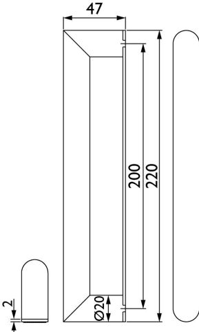 Stoßgriff Serie 8002 / Profil 20 Ø rund, Länge 220 mm, Achsmaß 200 mm, mit Klebeplatte 220 x 20 mm, inkl. Montagehilfe für Verklebung, Oberfl. 60 (Edelstahl matt)