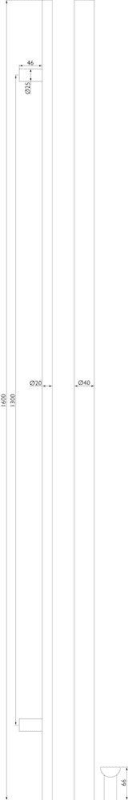 Stoßgriff Serie 8013 / Profil 40 x 20 mm halbrund, Länge 1600 mm, Achsmaß 1300 mm, 2 gerade Stützen, inkl. einseitiger Befestigung, Oberfl. 60 (Edelstahl matt)