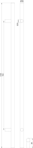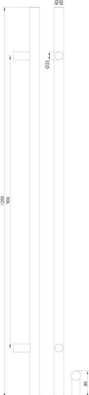 Stoßgriff Serie 8000 Ø 30 mm, Länge 1200 mm, Achsmaß 900 mm, 2 gerade Stützen, inkl. einseitiger Befestigung, Oberfl. 60 (Edelstahl matt)