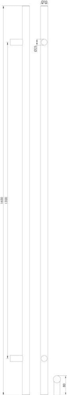 Stoßgriff Serie 8000 Ø 30 mm, Länge 1600 mm, Achsmaß 1300 mm, 2 gerade Stützen, inkl. einseitiger Befestigung, Oberfl. 60 (Edelstahl matt)