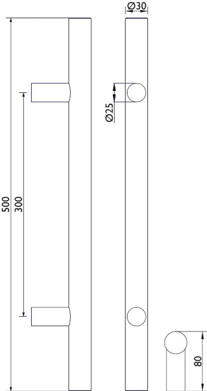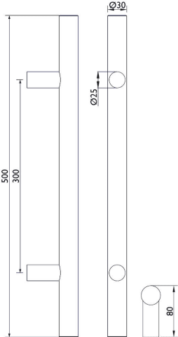 STOSSGRIFF SERIE 8000 L.500/A.300/D.30 MM INKL.BEFESTIGUNG 60 EDELSTAHL/GER.STÜTZE