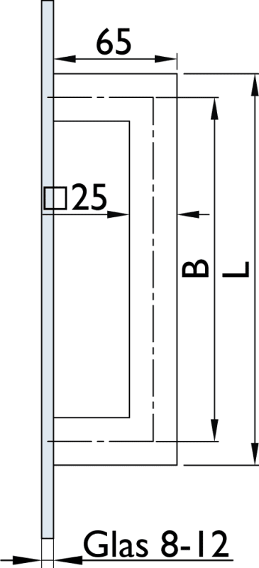 Stoßgriff Serie 8002 K STG, 25 x 25 mm Vierkantrohr auf Gehrung geschweißt, Gesamtlänge 1225 mm/Achsmaß 1200 mm, inkl. einseitiger Befestigung, Oberfl. 60 (Edelstahl matt)