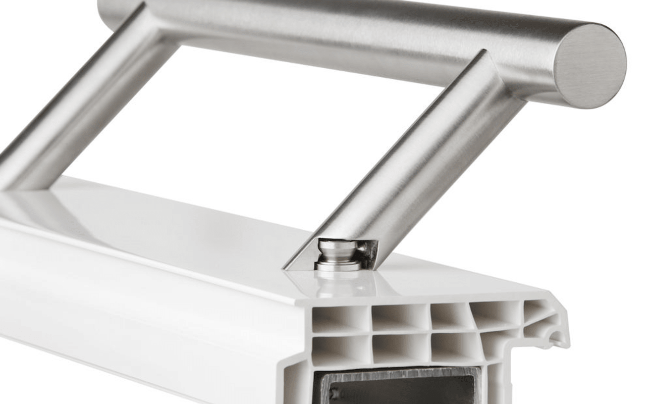 Stoßgriff Serie 8010 Ø 30 mm, Länge 300 mm, Achsmaß 210 mm, 2 schräge Stützen, inkl. einseitiger Befestigung, Oberfl. 60 (Edelstahl matt)