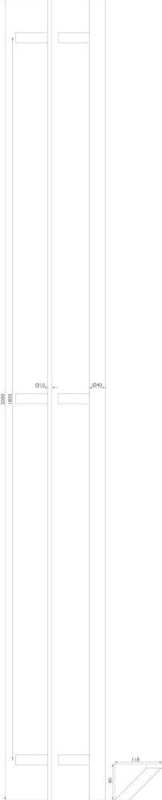 Stoßgriff Serie 8022 SL gk / 40 x 10 mm gerade, Länge 2000 mm, Achsmaß 1800 mm, 3 schräge Stützen 90mm inkl. PVC U-Scheiben, inkl. einseitiger Befestigung, Oberfl. 60 (Edelstahl matt)