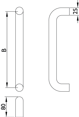 Stoßgriff Serie 8040 U Form, Durchmesser 25 mm / Achsmaß 200 mm, inkl. einseitiger Befestigung, Oberfl. 60 (Edelstahl matt)