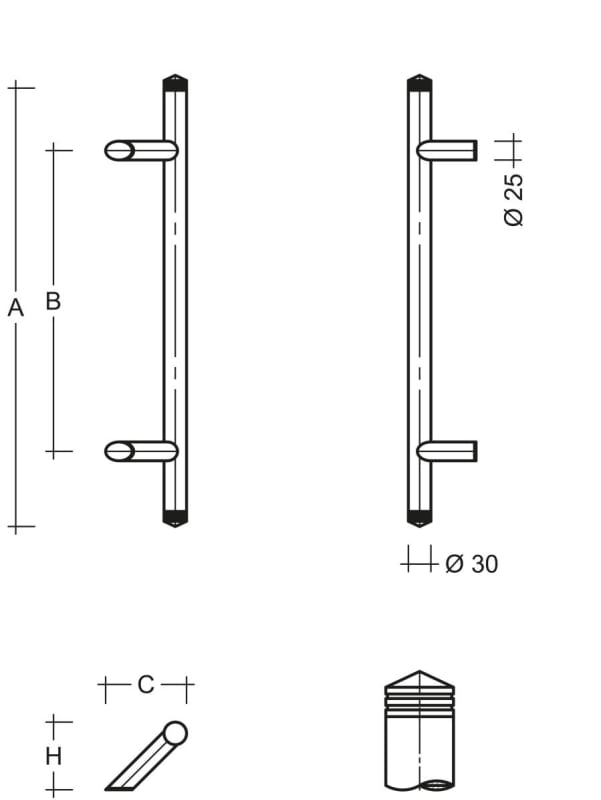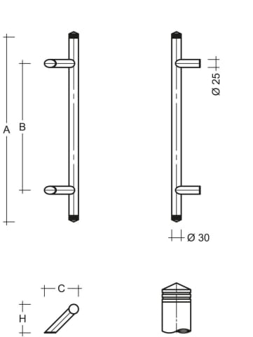 Meesenburg Artikelbezeichnung: STOSSGRIFF ZAE 751 EDELSTAHL ES30.9.4.330.210