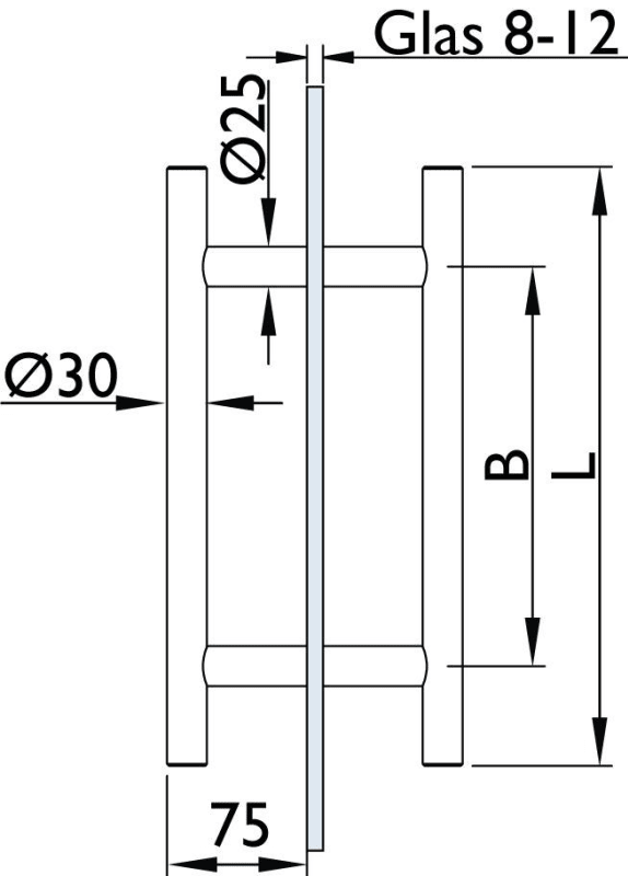 Stoßgriffpaar Serie 8000 Ø 30 mm, Länge 800 mm, Achsmaß 500 mm, 2 gerade Stützen, inkl. paarw. Befestigung für Tst. 8 - 55 mm, Oberfl. 60 (Edelstahl matt)
