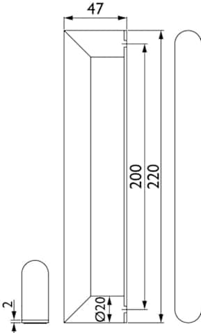 Stoßgriffpaar Serie 8002 / Profil 20 Ø rund, Länge 220 mm, Achsmaß 200 mm, mit Klebeplatte 220 x 20 mm, inkl. Montagehilfe für Verklebung, Oberfl. 60 (Edelstahl matt)