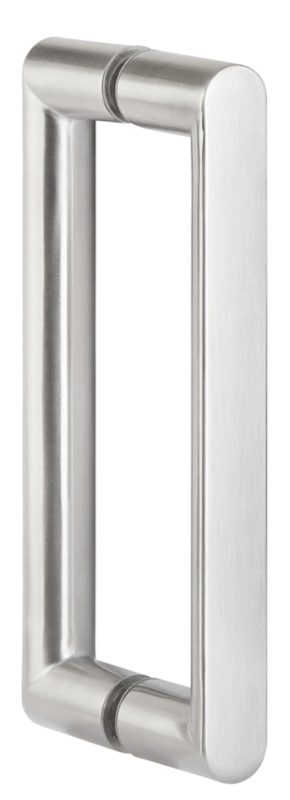Stoßgriffpaar Serie 8013 / 25 x 15 mm, auf Gehrung geschweißt, Gesamtlänge 225 mm/Achsmaß 200 mm, inkl. paarw. Befestigung für Türstärke 35 - 55 mm, Oberfl. 60 (Edelstahl matt)