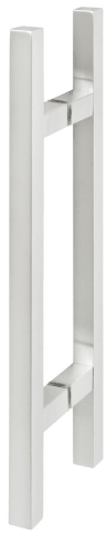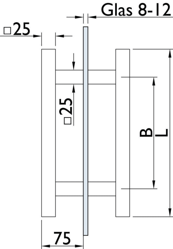 Stoßgriffpaar Serie 8031 / 25 x 25 mm Vierkantrohr, Länge 400 mm, Achsmaß 210 mm, 2 gerade Stützen, inkl. paarw. Befestigung an Glas, Oberfl. 60 (Edelstahl matt)