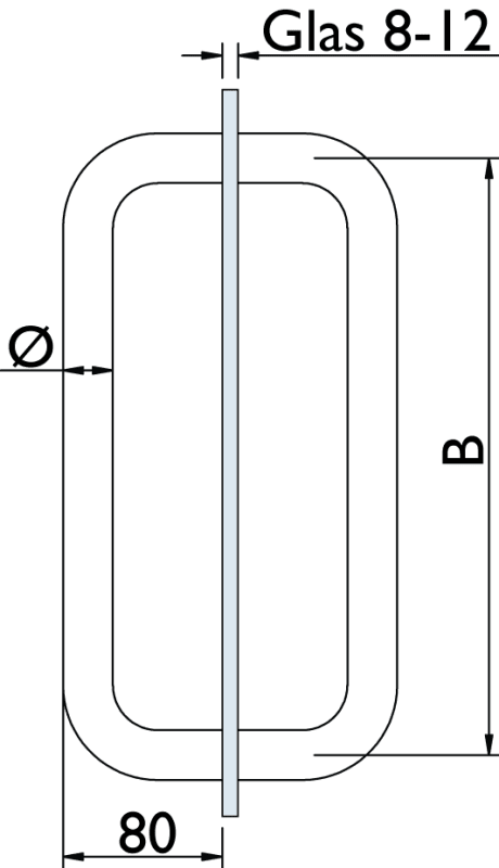 Stoßgriffpaar Serie 8040 U Form, Durchmesser 25 mm / Achsmaß 200 mm, inkl. paarw. Befestigung für Tst. 8 - 55 mm, Oberfl. 60 (Edelstahl matt)