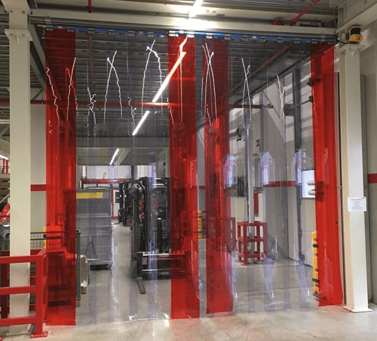 • Einsatzbereich: Verschließen großer Türöffnungen, Abtrennung unterschiedlich beheizter Hallenbereiche, Kapselung von Maschinen und Anlagen im Fertigungsbereich gegen Staub, Späne, Spritzer und Funkenflug