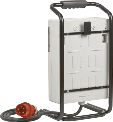 Stromverteiler BSV • Gehäuse aus stabilem, schlagfestem und spritzwassergeschütztem Kunststof • Stahlrohrgestell kunststoffbeschichte • Ölbeständiges Gummikabe • Mit 4 Schutzkontakt-Steckdosen jeweils einzeln abgesichert und mit 16 A einzeln belastbar und 2 x 32 A + 1 x 16 A CEE Steckdose • 1 CEE-Steckdose 400 V/16 A, 1 CEE-Steckdosen 400 V/32 A und 1 CEE-Stecker 400 V/32 A, 5-poli • Absicherung über 1 FI-Schalter 30 m • Schutzabdeckung für die Sicherunge • Tragbares Model • Für den Einsatz im Innenbereich sowie für den Baustelleneinsatz und den ständigen Einsatz im Außenbereich geeignet