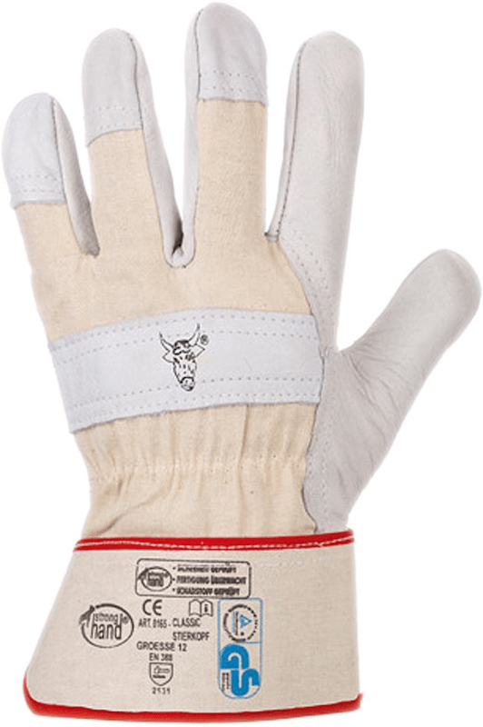 Rindvolllederhandschuh »Stierkopf Classic«Zulassung/Norm: EN 388 Eigenschaften: • Premium-Qualität • Doppelnaht • Gummierte Stulpe • Innenhand gefüttert Material: Rindvollleder Stärke: ca.