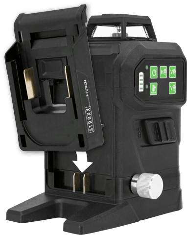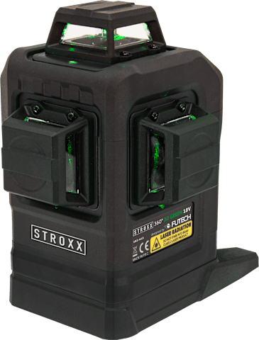 Projiziert 3 x 360° leistungsstarke Laserlinien