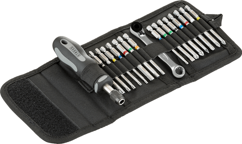 Das Set kombiniert den STROXX Fensterwartungsset (18-teilig) mit der Mini-Ratsche 1/4" – ideal für Handwerker und Heimwerker, die Wert auf Vielseitigkeit und Präzision legen. Das STROXX Fensterwartungsset bietet 16 hochwertige Bits aus langlebigem Chrom-Vanadium-Stahl für TX, PZ, PH, SL und H. Dank Quick-Release-Funktion lassen sich die Aufsätze schnell und sicher wechseln. Der ergonomische Griff mit rutschfester Gummi-Ummantelung sorgt für komfortables Arbeiten, während die kompakte Gürteltasche mit Klettverschluss Ordnung und schnellen Zugriff ermöglicht. Die Mini-Ratsche ist mit 52 Zähnen und einem Rückholwinkel von nur 7° perfekt für enge Schraubanwendungen. Mit Adapter lässt sie sich auch für 1/4"-Steckschlüsseleinsätze nutzen. Ein Rändelrad ermöglicht schnelles Schrauben, wo kein Platz zum Ratschen bleibt. Aus legiertem Hochleistungsstahl gefertigt und verchromt, ist sie extrem robust und langlebig.