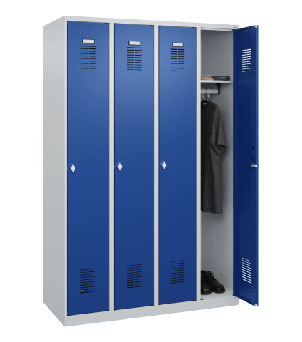Der Stroxx Garderobenschrank mit Sockel ist aus hochwertigem Stahl gefertigt und bietet eine langlebige und robuste Lösung für die Aufbewahrung von Kleidung und persönlichen Gegenständen.