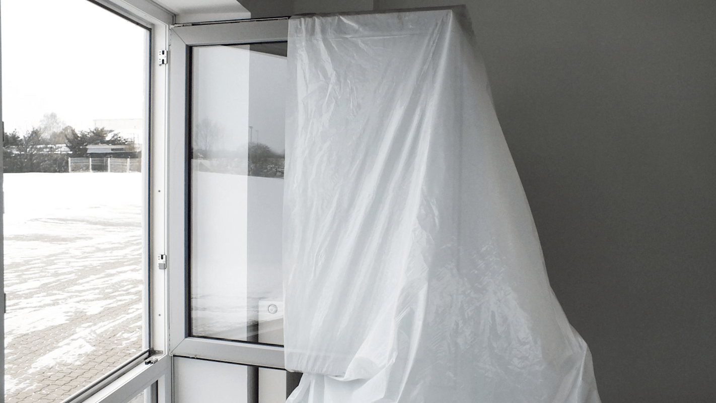 ZUVERLÄSSIGER FENSTERSCHUTZ – LDPE-Flügelschutz zum Überziehen von Fensterflügeln bei Neubau, Renovierung und Reinigung.