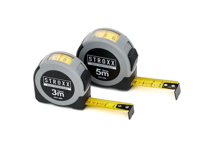Das STROXX Maßband mit 3/5 Metern Länge ist speziell für das präzise Messen von Fenster- und Türöffnungen entwickelt. Ein integriertes Sichtfenster (Top Read) ermöglicht das direkte Ablesen von Innenm