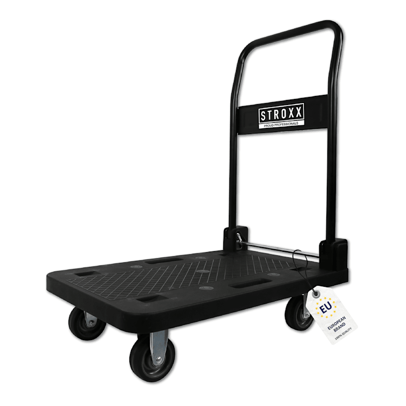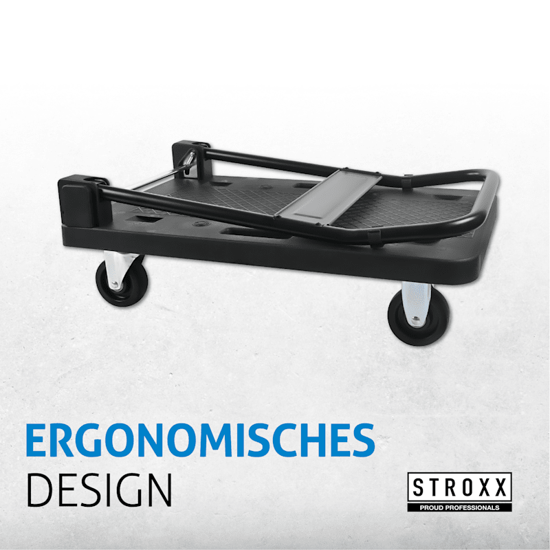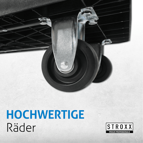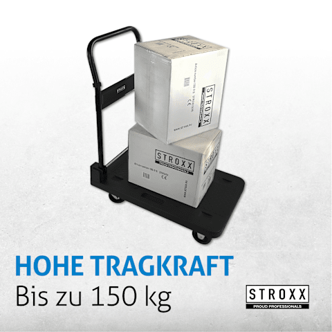 HOHE TRAGKRAFT – Der STROXX Plattformwagen trägt bis zu 150 kg und eignet sich ideal für den Transport schwerer Lasten in Werkstatt, Lager oder Haushalt.