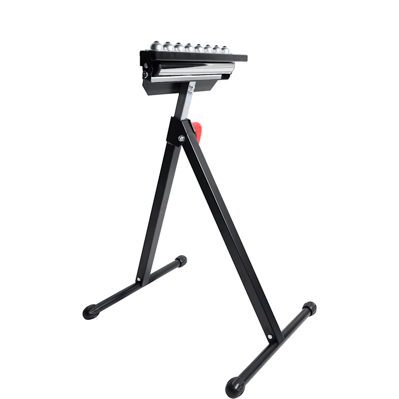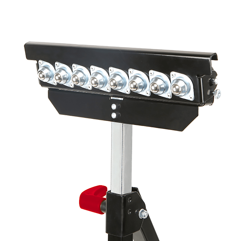 SICHER & VIELSEITIG – Verzinkte Rollen, Kugellager und rutschfeste Gummifüße unterstützen lange Werkstücke zuverlässig.