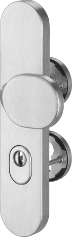 Die STROXX Schutz-Langschild/Rosetten-Wechselgarnitur, ZA, 15 mm ist eine hochwertige Türbeschlag-Kombination, die Sicherheit und Ästhetik vereint. Das Langschild und die Rosetten bestehen aus robuste