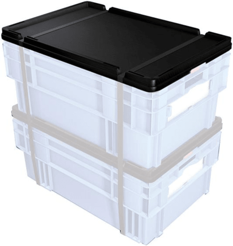 Stülpdeckel für Drehstapelbehälter • Verschließbar mit Einwegplomben • Universell einsetzbar als Staubdeckel • Stapelfähigkeit bleibt erhalten • Farbe: schwarz