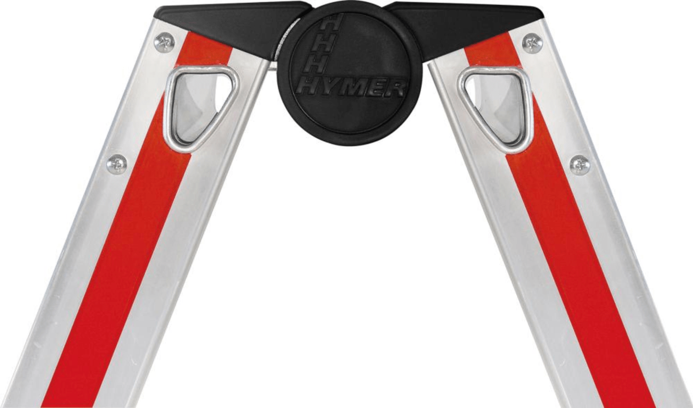 Stufenstehleiter, beidseitig begehbar • Material: Aluminium • Holme: eloxiert (kein schwarzer Aluminiumabrieb) • Stufentiefe: 80 mm (Vorderkante mit Holm bündig) • Stahlscharniere • Spreizsicherung d