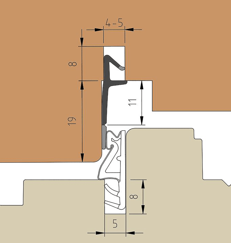 TRELLEBORG Stulpdichtung L7008; Ausführung: mit Abreißsteg; Werkstoff: TSP-LAN; Befestigungsart: zum Einnuten; Einsatzbereich: Haustür; Basis: Stulpdichtung; Nutbreite: 5 mm; Profilform: Stulp; Farbto