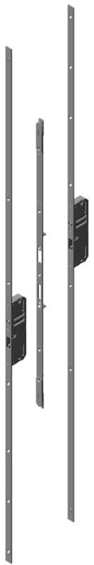 STULPGARNITUR FUER HAUPTSCHLOSS-TYP D 35-65 DORN BESTEHEND AUS: STULPOBER- UND STULPUNTERTEIL MIT HAKEN BOLZENSCHLOSS (2600) UND STULPMITTELTEIL, 20 MM KANTIG, FUER 92 MM UND 94 MM ENTFERNUNG, NIROSTA