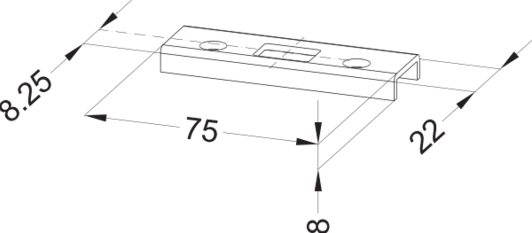 WINKHAUS Schließblech STV TKR U2213; Ausführung: für Kantriegel; Material: Stahl; Tiefe: 8mm; DIN Richtung: DIN Links-Rechts; Basis: Schließblech; Farbe: grau; Länge: 75mm; Breite: 22mm; für Riegeldur