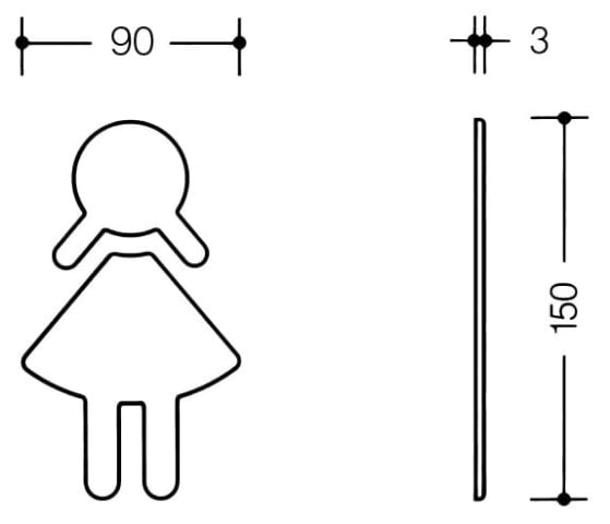 HEWI Symbol Frau, selbstklebend, 150 mm hoch, 87 mm breit und 3 mm dick, aus hochwertigem Polyamid. Eigenschaften: • selbstklebend • 150 mm hoch, 71,5 mm breit und 3 mm dick • aus hochwertigem Polyam