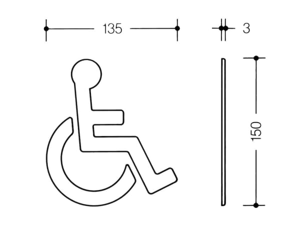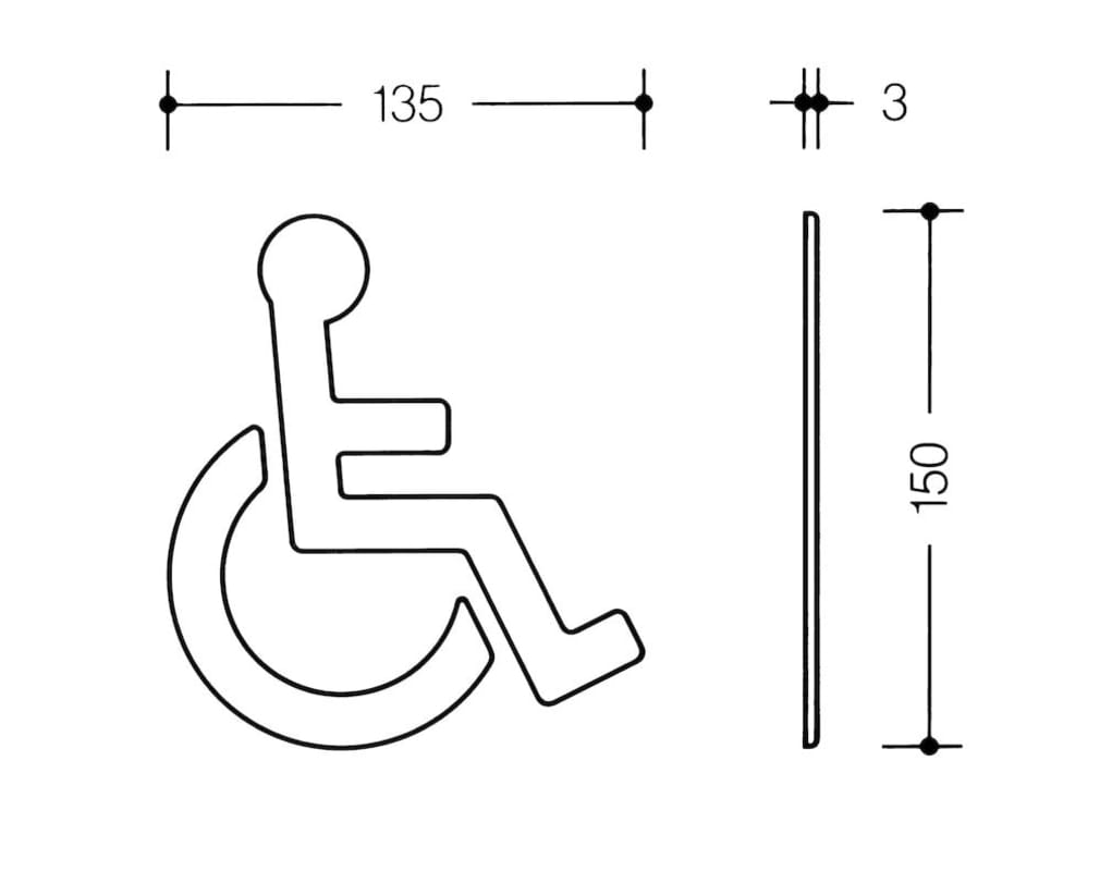 HEWI Symbol Barrierefrei, selbstklebend, 150 mm hoch, 135 mm breit und 3 mm dick, aus hochwertigem Polyamid. Eigenschaften: • selbstklebend • 150 mm hoch, 135 mm breit und 3 mm dick • aus hochwertige
