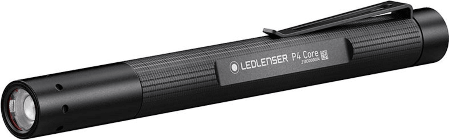 LED-Taschenlampe P4 Cor • Fest verbaute Hochleistungs-LE • Leuchtstärke in 3 Stufen einstellba • Lichtstrahl fokussierba • Aluminiumgehäuse mit Cli • Schutzart IP54, Einsatz im Innen- und Außenberei