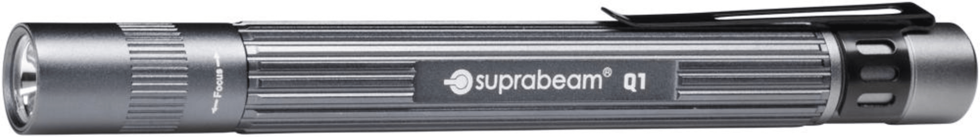 LED-Taschenlampe Q • Fest verbaute CREE-LE • Leuchtstärke in 2 Stufen (100/25 %) einstellba • Lichtstrahl fokussierbar (10–70° • Aluminiumgehäuse mit abnehmbarem Cli • Schutzart IPX4, Einsatz im Inn
