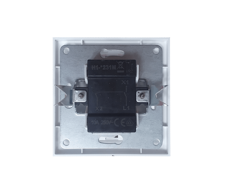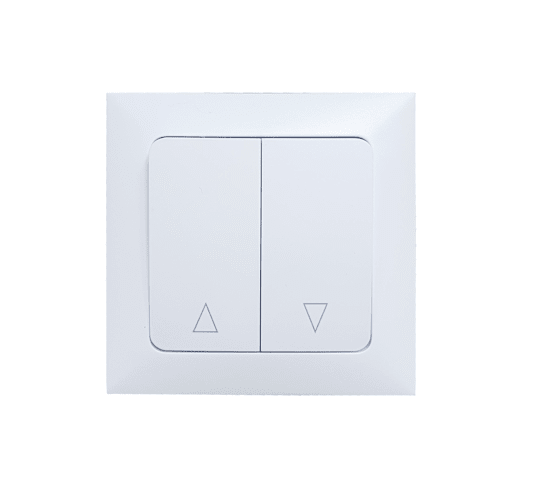 Die Wippe rastet in der Position ein, sodass es nicht notwendig ist, den Schalter gedrückt zu halten. Mit einer Einbautiefe von ca. 30 mm wird der Rolladenschalter via Unterputzmontage in einer Schalterdose untergebracht.