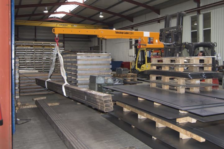 Teleskoplader Modell KT • Konstruktion: stabile Stahlkonstruktion • Lastarm: starr • 8-fach ausziehbarer Teleskoparm • Einfahrtaschen: für Gabelzinken, innen: B/C 184/84 mm • Kettensicherung: gegen u