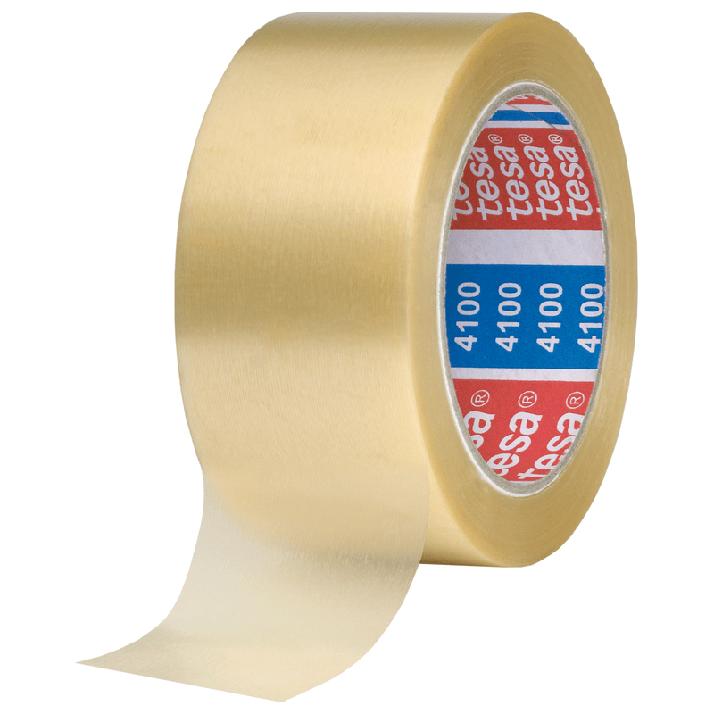 Das Verpackungsklebeband tesapack® 4100 PVC eignet sich für das sichere Verschließen von mittelschweren Kartons und kann manuell mit einem tesa®-Handabroller oder auch maschinell verarbeitet werden. Mit der Kombination aus geprägter PVC-Folie und einer starken Klebmasse aus Naturkautschuk bietet das Paketklebeband genau die Leistung, die bei professionellen Verpackungsarbeiten benötigt wird. Die geprägte Folie sorgt außerdem dafür, dass das Klebeband gleichmäßig und leise abgerollt werden kann.