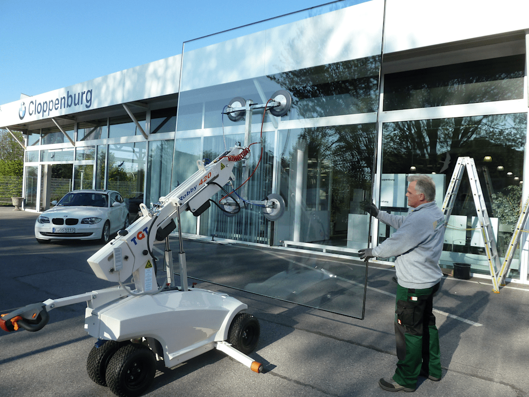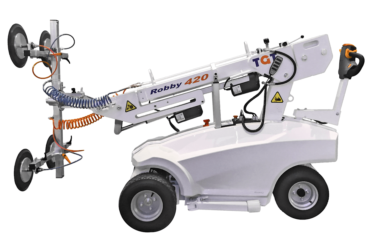 So flexibel und mobil, wie Sie ihn gerade brauchen: Die Rad- und Kettengeräte der Robby-Serie von TGT manipulieren gasdichte Elemente auf Baustellen oder in der Produktion, zum Beispiel Glas, Bleiverglasungen, Rigips, Riffelbleche oder Sandwichpanele – und das in einer Höhe