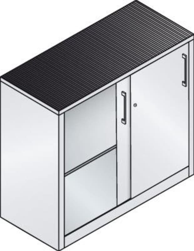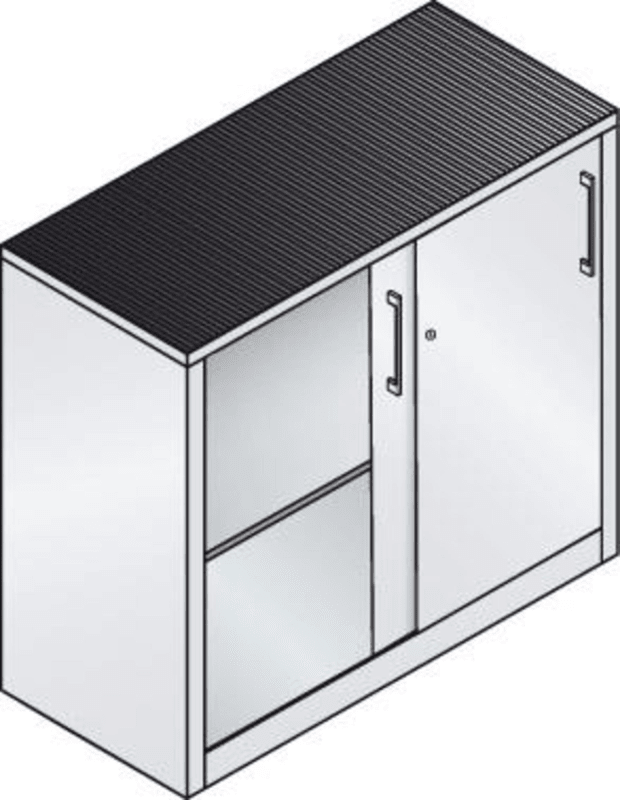 Schiebetüren-Beistellschrank, Höhe 1000 mm • Langlebige Stahlkonstruktion • Türen: rollengelagert und leichtgängig • Material: Stahlblech mit hochwertiger Einbrennbeschichtung • Raster-Höhenverstellu