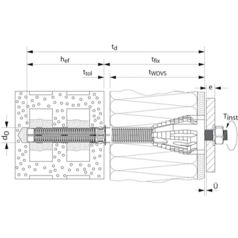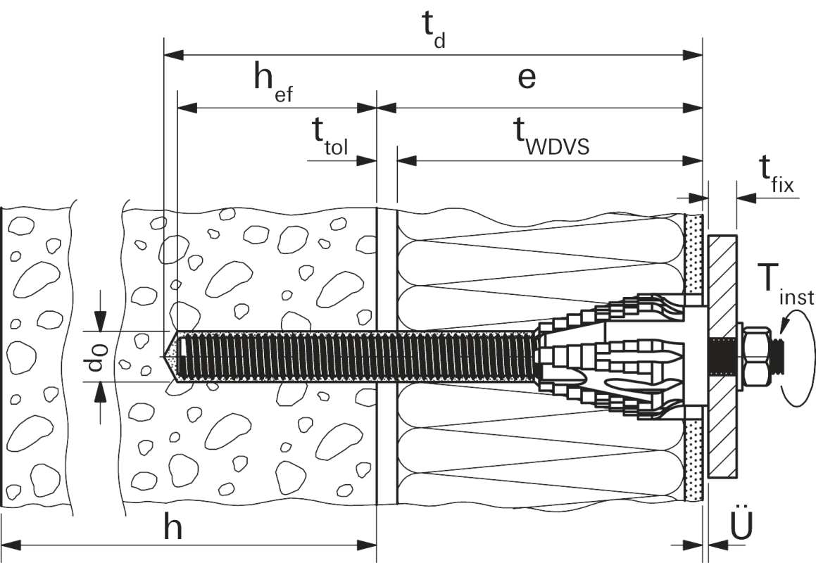 Der glasfaserverstärkte Kunststoffkonus fräst sich formschlüssig in das WDVS und ermöglicht dadurch eine einfache, schnelle und justierbare Montage ohne Sonderwerkzeuge.