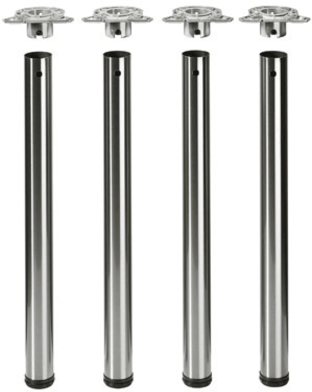 • Länge 710 mm• Höhenverstellung + 30 mm stufenlos bis Länge 740 mm• Belastbarkeit 150 kg pro Tischbein• StahlSet besteht aus: • 4 Stück Tischbeine• Befestigungsmaterial