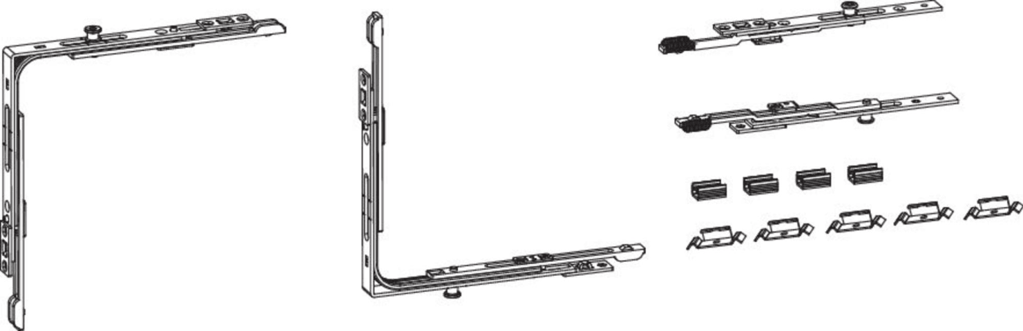 Grundkarton ZV Hautau Schwingflügel Tornado Beschlag 3-seitig 200kg mit Riegelführungen Mittelteil mit 4 i.S. FFH/FFB 650-2.350 silber