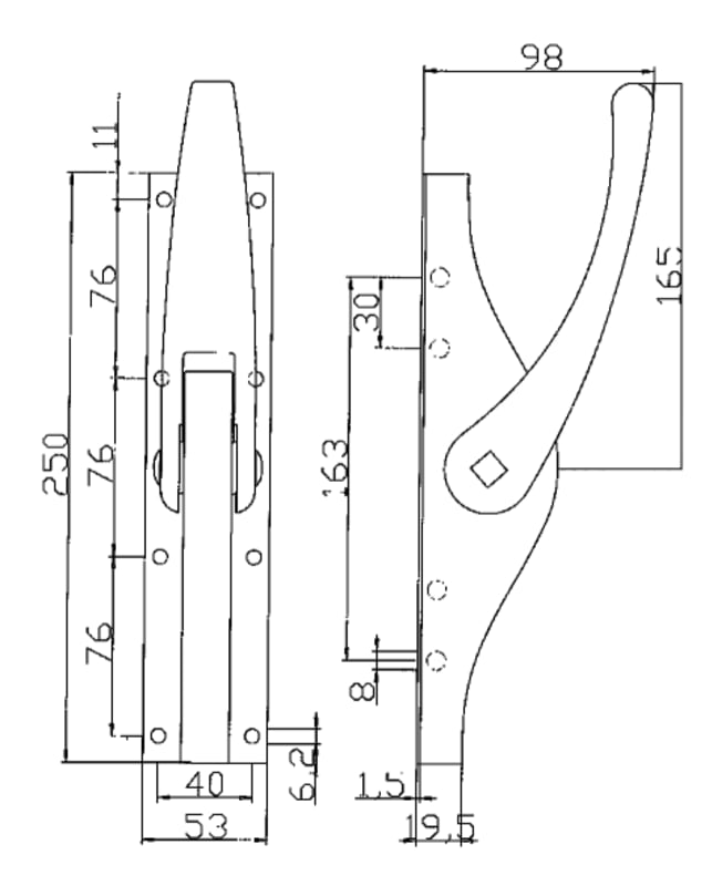 DENI, Tortreibriegel, Ausführung: mit 4 Schlaufen, für Vierkantstange: 16 mm, Ergänzung: mit Zylinder, mit Schlüssel, mit Unterlegplatte, Modellnummer: 4017, DIN-Richtung: links-rechts, Material: Stahl, Oberfläche: galvanisch verzinkt, Befestigungsart: zum Anschrauben, Länge: 250 mm, Breite: 52 mm, Hub: 30 mm, Material Schlaufenhebel: Aluminium, Schraublochabstand (Breite): 40 mm, Funktion: verschiedenschließend