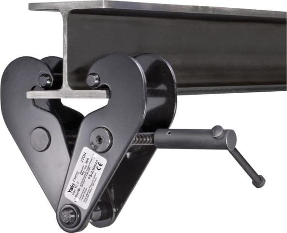 Trägerklemme Modell YC • Konstruktion: niedrig durch integrierte Last-Achse • Träger-Beanspruchung: reduziert durch speziell geformte Klemmbacken • Klemme: einstellbar für weiten Träger- und Profilbereich (z. B. INP, IPE, IPB) • Wartung: leicht und einfach • Verschleißteile: leicht auszuwechseln • Prüfung: mit Überlast Lieferung: Mit Test-Zertifikat.