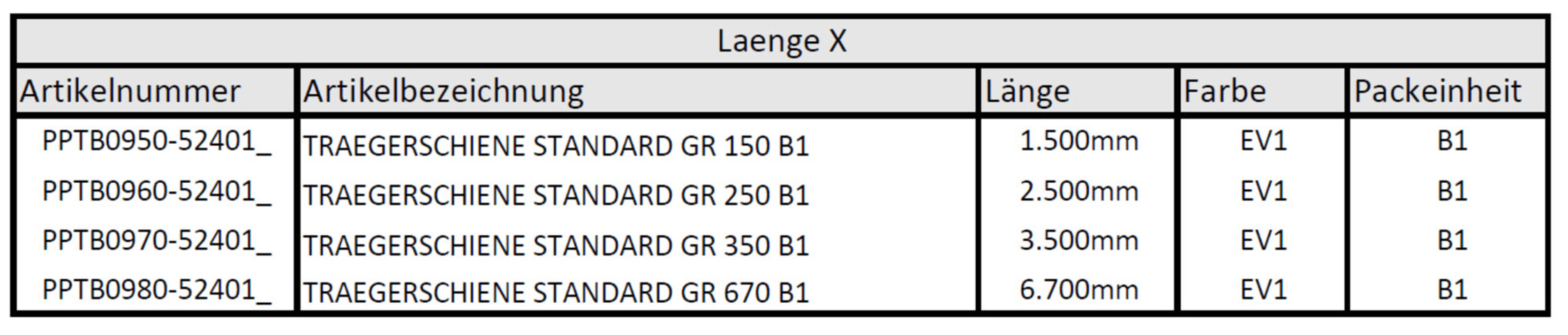 Meesenburg Artikelbezeichnung: TRAEGERSCHIENE STANDARD GR 350 B1 PPTB0970-524010