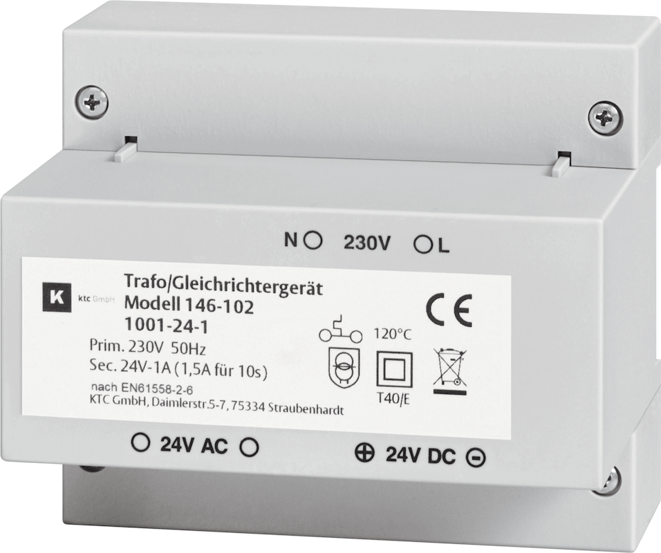 TRAFO-GLEICHRICHTER-KOMBINATION 230V 24V GS/WS 1A MODELL KTC 146-102