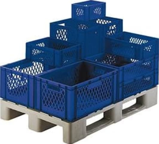 Transport-Stapelkasten, Wände und Boden durchbrochen • Material: Polypropylen • Entspricht den Bestimmungen des Lebensmittelgesetzes • Für den Einsatz auf Rollenbahnen • Wände und Boden durchbrochen • Passend zu Palettengrößen B x L: 800 x 1200 mm • Hohe Stabilität • Temperaturbeständigkeit: –20 °C bis +60 °C • Medienbeständigkeit: viele Säuren und Laugen
