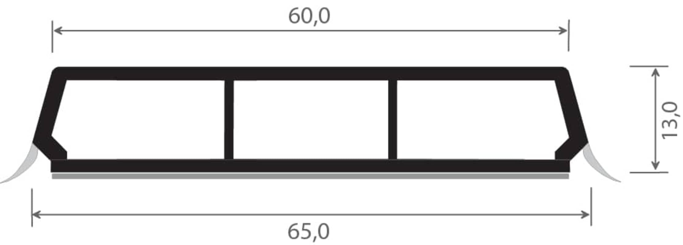 Trapez-Sprosse 65 mm SK Lg. 6,00 m foliert, mit zwei schwarzen Weichlippen 50 0705-167 BRILLANTBLAU [43]