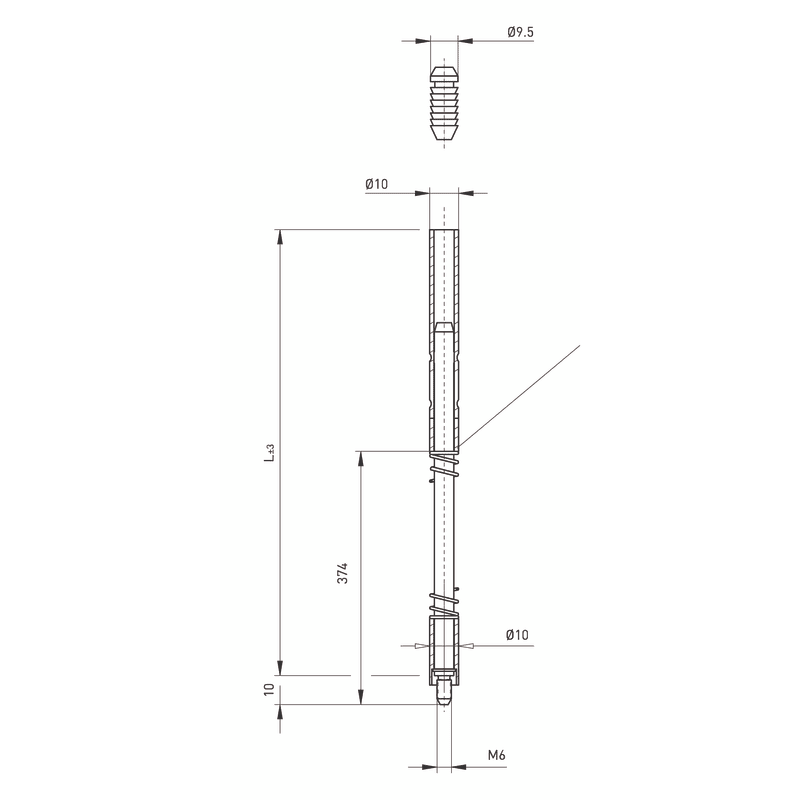 BMH Treibriegelstange Nr. 1102, mit Verriegelungsfeder und Gleitstopfen. Ausführung: Stahlrohr, verzinkt, Durchmesser: 10 mm, Gewinde: M6, Längen: L = 1135, 1385, 1635, 1885, 2135, 2385, 2635 mm,